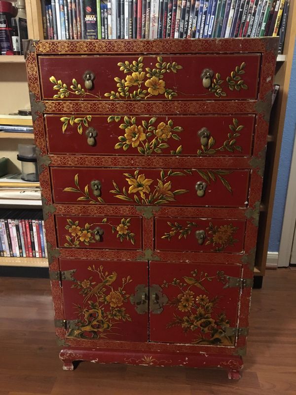 Antique Solid Wood Hand Painted Dresser Asian Floral Red Gold Brass 22 W X 13 D X 37 T For Sale In Katy Tx Offerup
