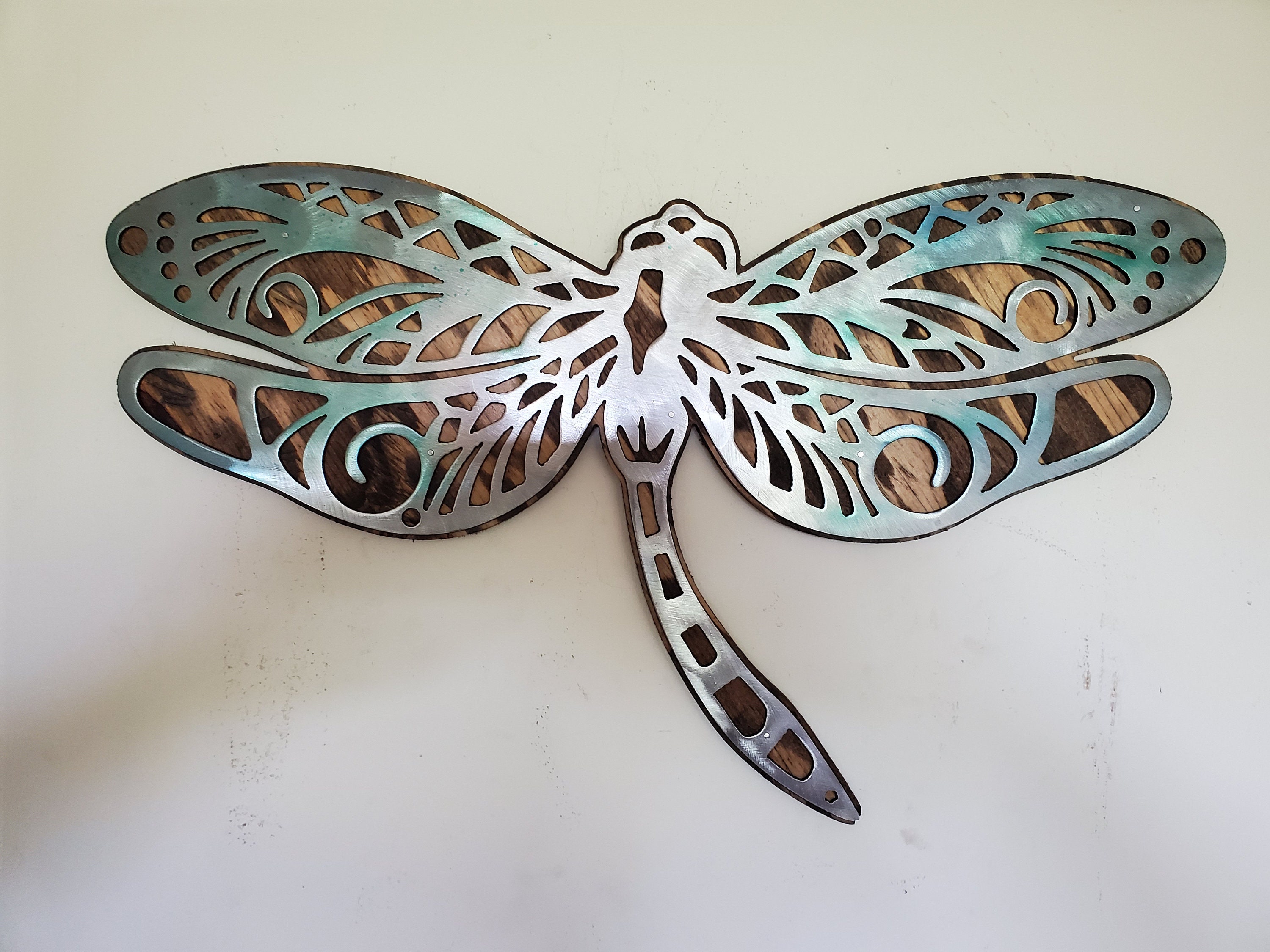 Dragonfly Wall Art Decor Metal On Wood Rustic Wall Hanging Made In Usa Steel Office Sign