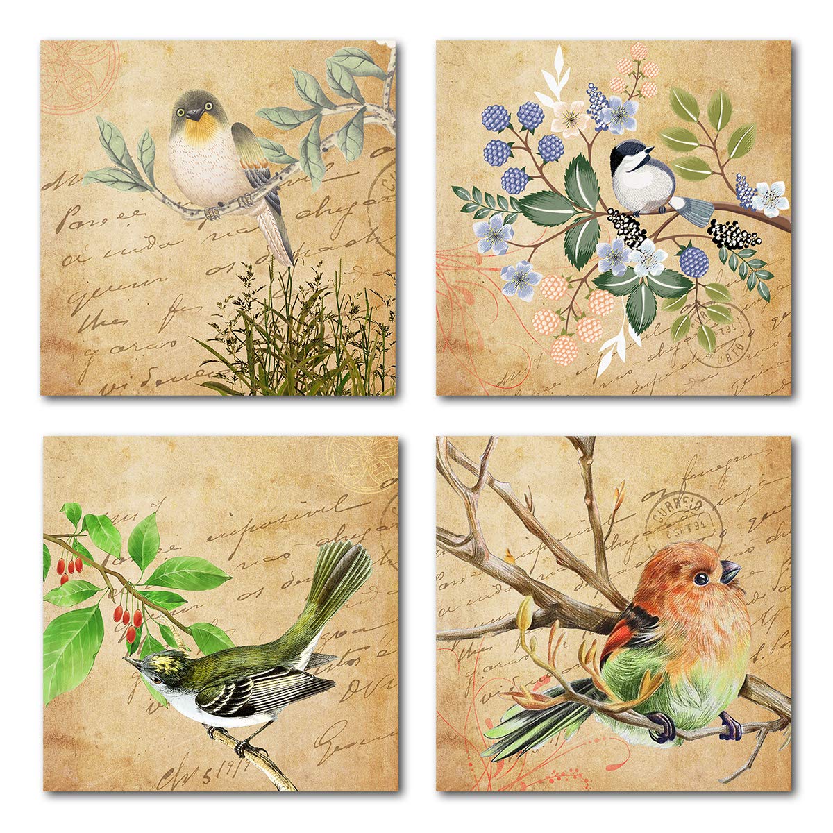 Vintage Bird Canvas Wall Art 4 Pieces Rustic Wall Decor Prints Paintings Ready To Hang For Home Bathroom Kitchen Office Decor 12 X 12 Inches Buy Online In India At Desertcart Productid 162607504