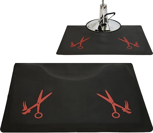 Amazon Com Lcl Beauty 1 2 Rectangle Anti Fatigue Beauty Barber Floor Mat With Red Salon Scissor Design Kitchen Dining