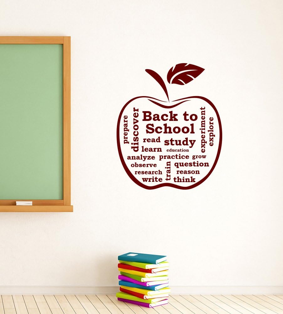 Amazon Com Apple Back To School Sign Wall Sticker Vinyl Lettering Inspirational Word Cloud Decal Education Study Art Decorations For Classroom Door Decor Ed12 Arts Crafts Sewing