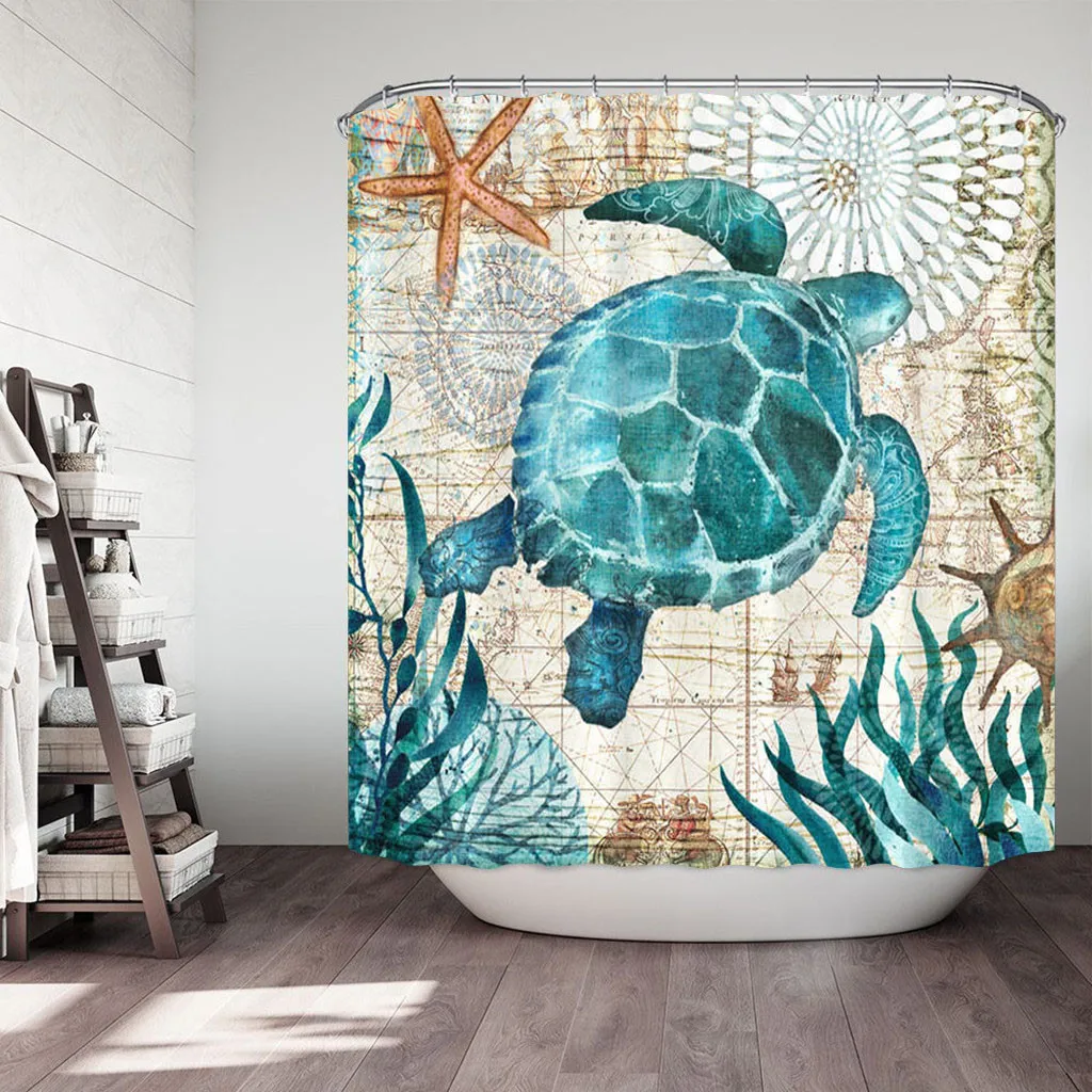 Fabric Shower Curtain Sea Turtle Home Decor Bathroom Accessories Waterproof Polyester Whale Octopus Seahorse Bath Curtain Hx0322 In Curtains From Home Garden On Aliexpress