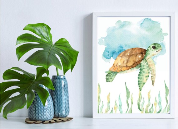 Beautiful Sea Turtle Ocean Wildlife Beach Home Decor Printable Etsy