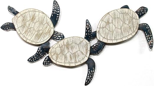 Amazon Com Stratton Home Decor Stratton Home Metal And Wood Carved Turtle Wall Decor 36 00 W 1 75 D X 19 50 H Blue White Home Kitchen