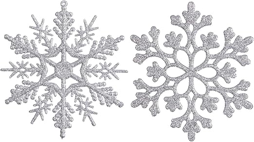 Amazon Com Sea Team Plastic Christmas Glitter Snowflake Ornaments Christmas Tree Decorations 4 Inch Set Of 36 Silver Furniture Decor