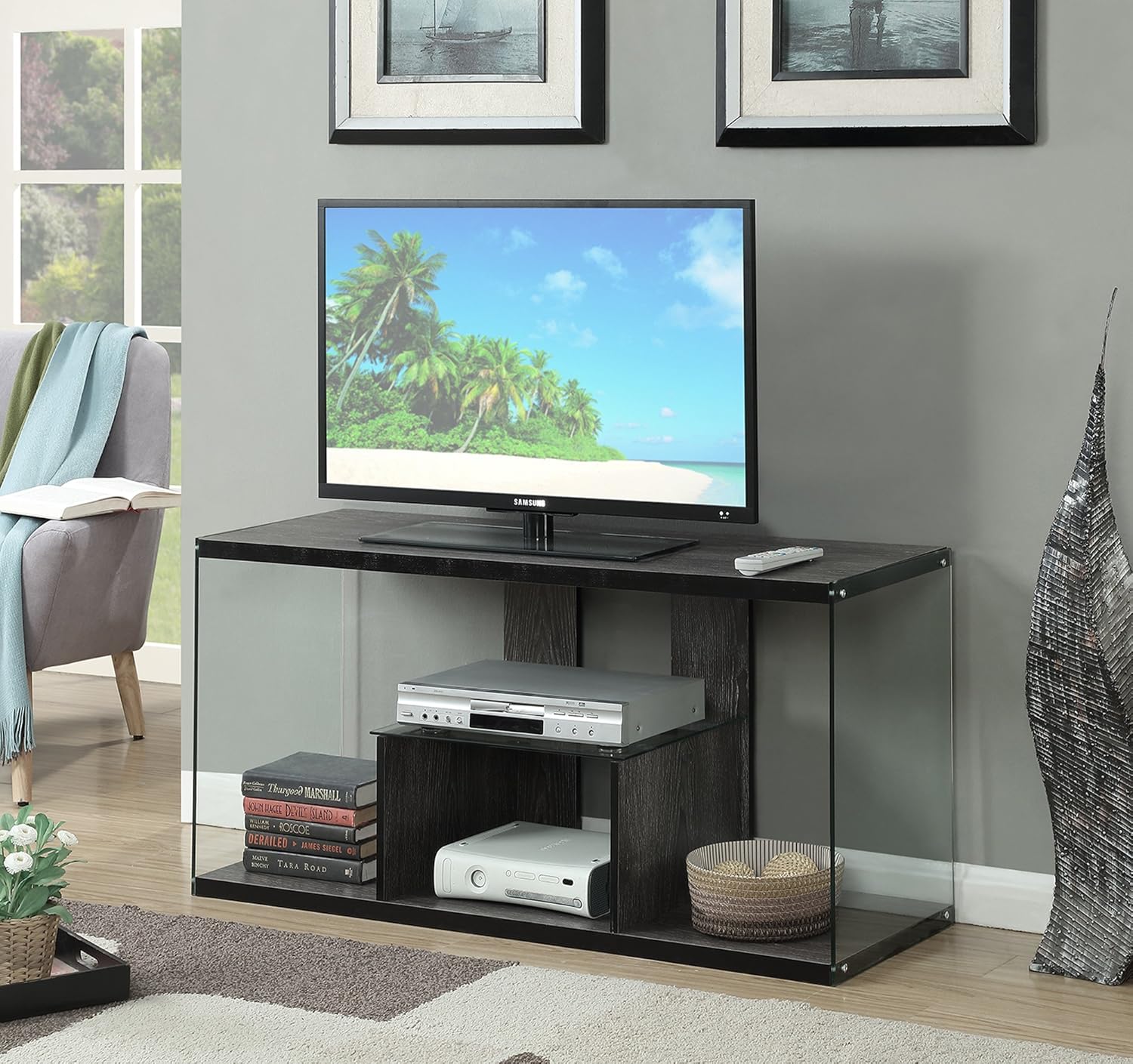 Amazon Com Convenience Concepts Soho Tv Stand Weathered Gray Furniture Decor