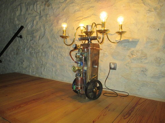 Industrial Steampunk Floor Lamp Light Cast Iron Brass Copper Pipe Machine Age 1794608644