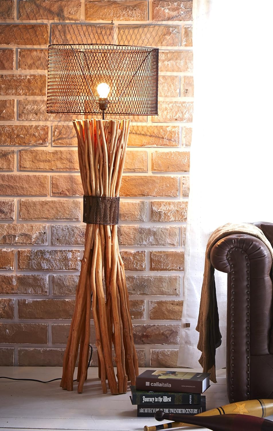 O Thentique Industrial Steampunk Standing Floor Lamp Large Natural Branches Bunched Elementaire Design Rusty Metal Round Shade Handmade For Home Decor Living Room Bedroom Kids Room Office Library Amazon Com