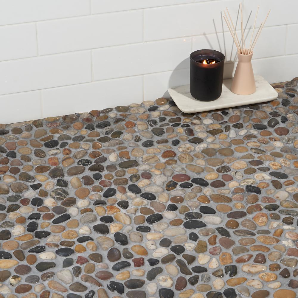 Zen Bora Natural Stone Pebble Mosaic Floor Or Wall Tile Sheet Flat Polished Carpetmart