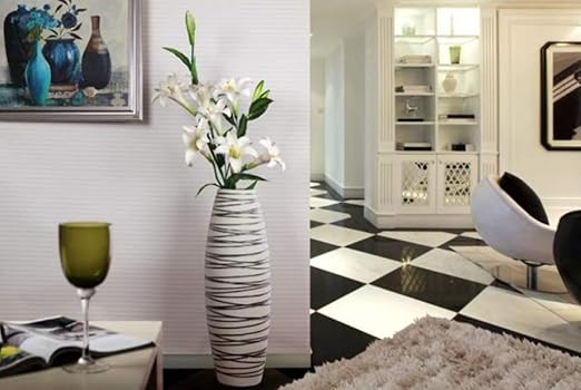 Amazon Com Ceramic Vase European Style Landing Large Vase Modern Simple Creative Living Room Home White Ceramics Floral Decoration Floor Vase Tall Vase Plant Vase 60cmx22cmx13cm Size 60x22x13cm Home Kitchen