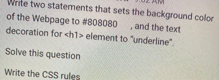 Solved Write Two Statements That Sets The Background Colo Chegg Com