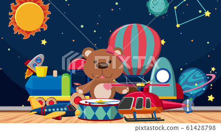 Background Scene With Toys On Wooden Floor Stock Illustration 61428798 Pixta