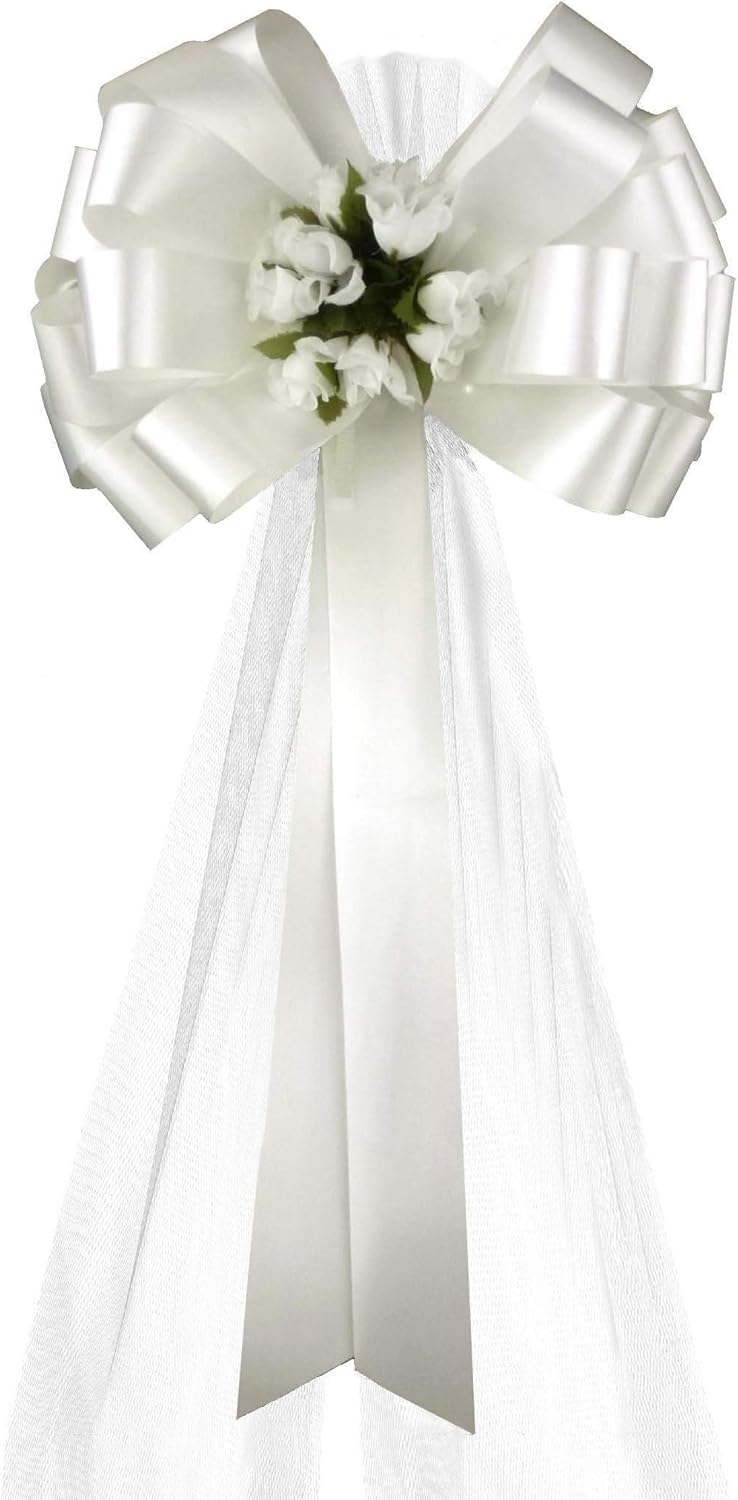 Amazon Com White Pull Bows With Tulle Tails And Rosebuds 8 Wide Set Of 6 Wedding Pew Bows Reception Aisle Decoration Anniversary Christmas Valentine S Day Birthday Event Decor Health Personal Care