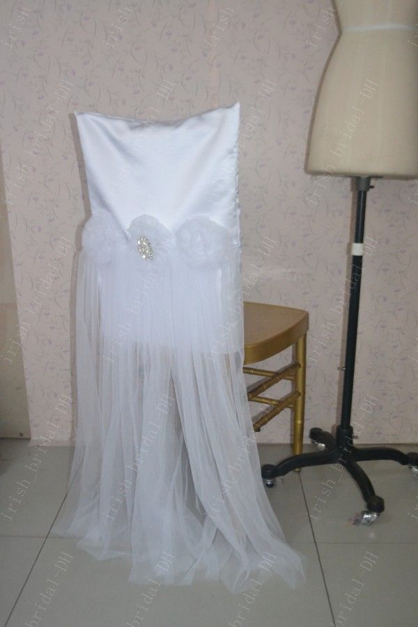 2020 2016 Custom Made White 3d Flowers Chair Covers Romantic Beautiful Tulle Crystal Chair Sashes Cheap Wedding Chair Decorations 08 From Irish Bridal 2 82 Dhgate Com