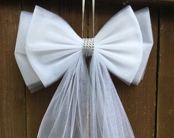 Amazon Com White Tulle White Satin Wedding Pew Bows Church Decorations Set Of 14 9 X22 Everything Else
