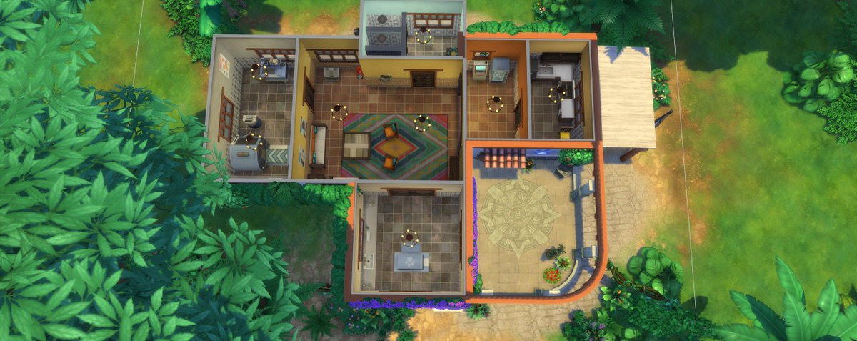 Spanish Fincaanother Vacation House Made For Selvadorada 30x20 Lot Comes With An Open Kitchen Dining And Living Sims House Sims House Design Sims House Plans
