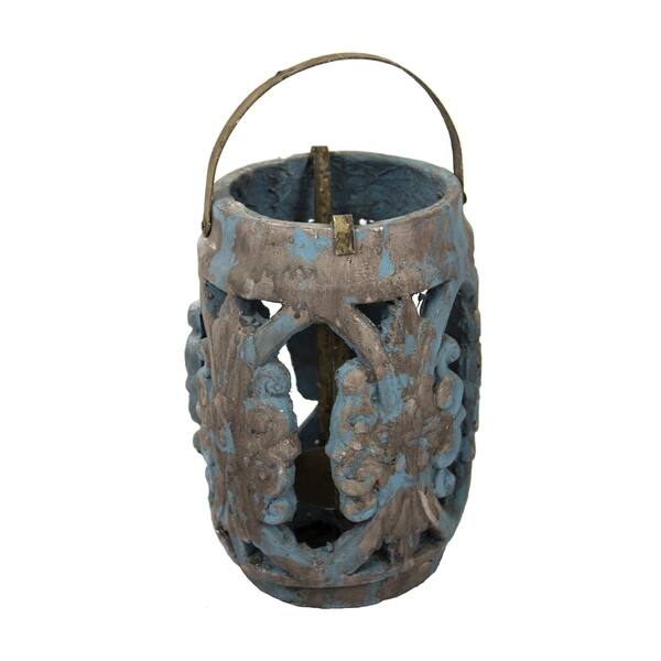 Shop Cement Carved Lantern Candle Holder With Attached Handle Large Antique Blue Overstock 27646004