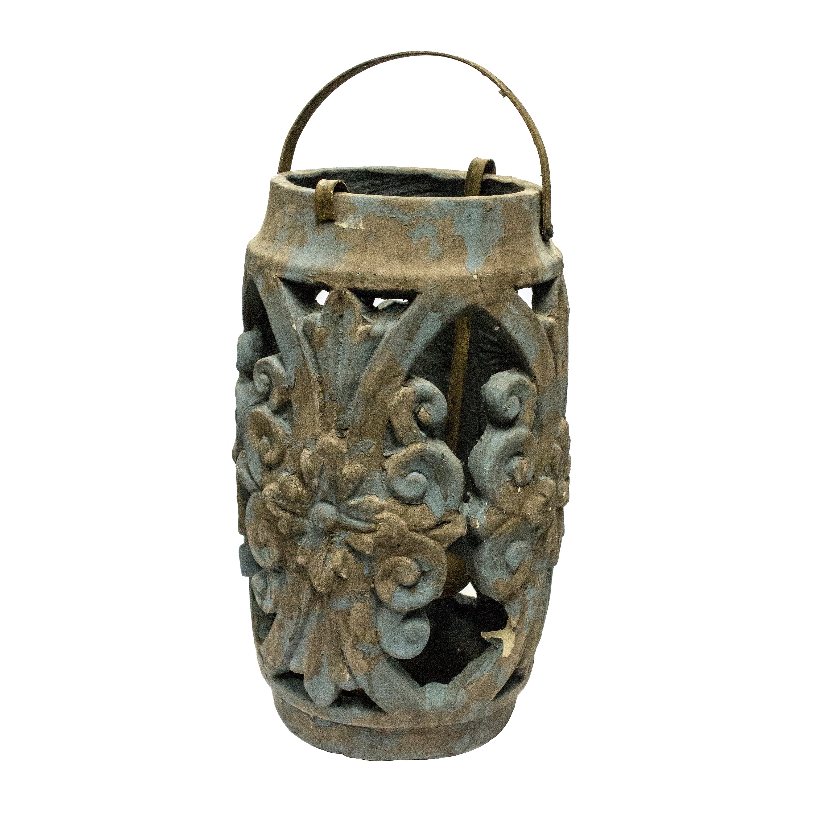 Cement Carved Lantern Candle Holder With Attached Handle Small Antique Blue Overstock 26956778