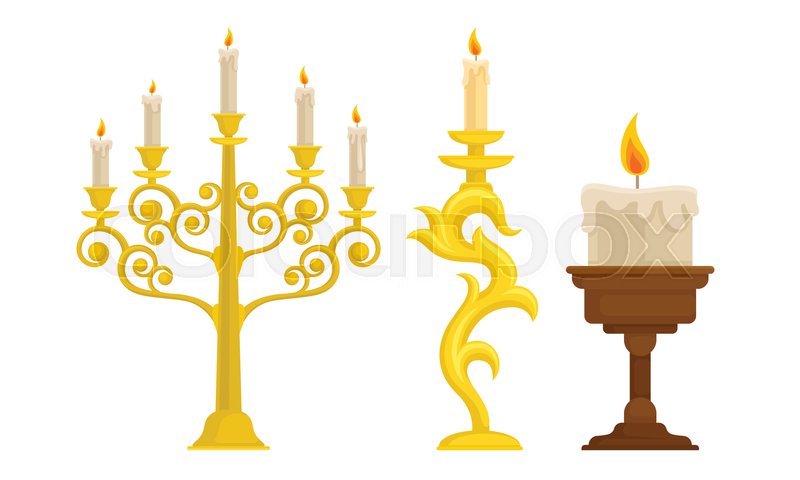 Candles In Candlesticks Vector Set Vintage Candle Holders And Royalty Free Cliparts Vectors And Stock Illustration Image 135399428