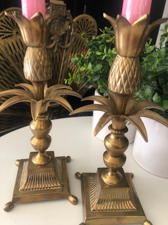 Vintage Brass Candleholders Set Of 2 Pineapple Welcome Home Decor Colonial Style By Cake Stands Boutique Catch My Party