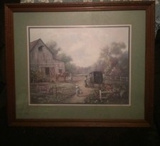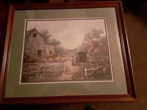 Vintage Home Interior Wood Framed Print Art Carl Valente Amish Farm Barn Buggy Ebay