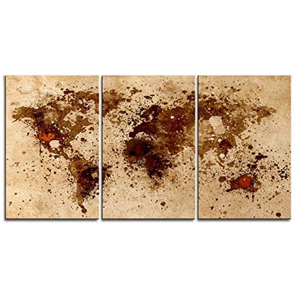 Original By Boxcolors Large 30 X 60 3 Panels 30 X20 Ea Art Canvas Print Watercolor Beige Brown Sepia Old Paper Map Vintage Wall Decor Home Interior Framed 1 5 Depth Walmart Com Walmart Com