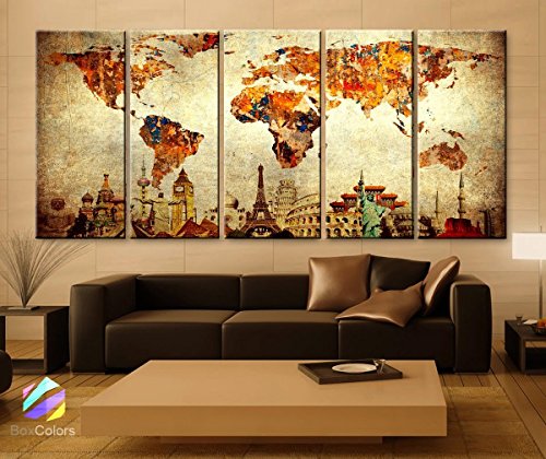 Original By Boxcolors Large 30 X 70 5 Panels 30x14 Ea Art Canvas Print Original Wonders Of The World Old Paper Map Vintage Wall Decor Home Interior Framed 1 5 Depth M1845 Walmart Com