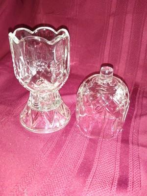 Candles Candleholders Set Of 2 Clear Tall Diamond Votive Cups Vintage Home Interiors Collectibles