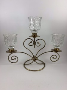 Vintage Home Interior Brass Look Candle Stand With 3 Clear Glass Votive Cups Ebay