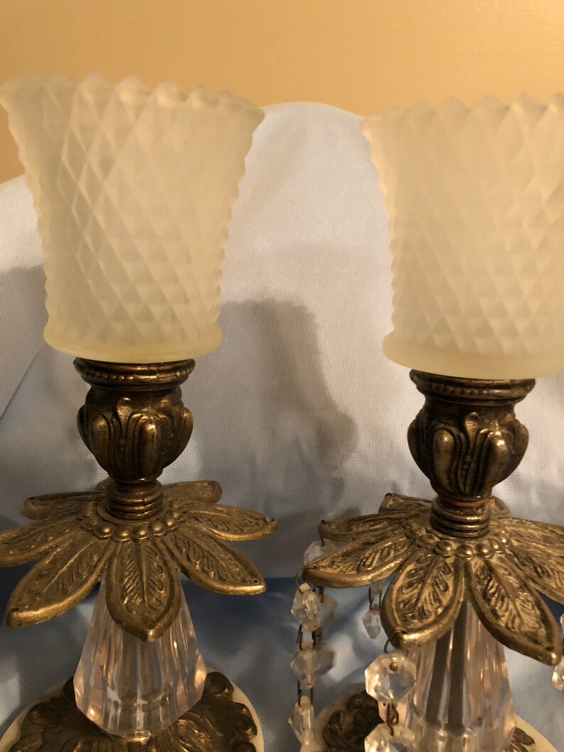 Pair Of Beautiful Gold Brass Style Double Candle Wall Sconces Colonial Style Syroco Candle Holders Homco Home Interior With Vintage Glass Peg Based Votive Cup Candle Holder Diamond Pattern Frosted Satin White