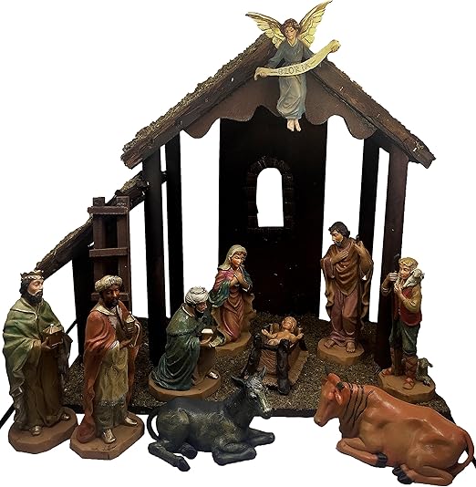 Amazon Com 16 Piece Deluxe Edition Christmas Nativity Set With Real Frankincense Gold And Myrrh 14 Inch Scale Home Kitchen