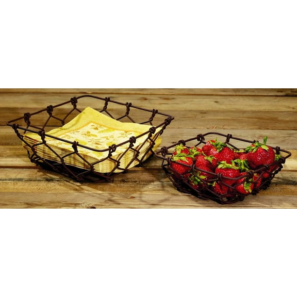 Antique Primitive Vintage Rust Brown Vintage Square Chicken Wire Baskets Set Of 2 Wire Mesh Gift Food Fruit Flowers Storage Shelf Decor Walmart Com Walmart Com