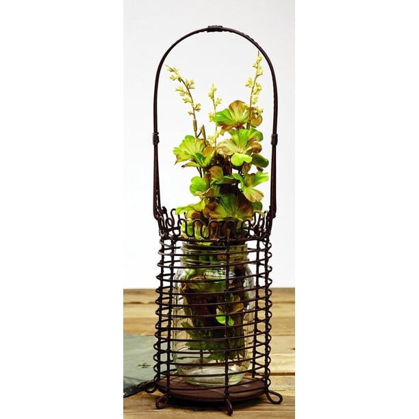 Antique Primitive Vintage Rust Brown Iron Brown Color Single Bottle Holder For Candles Gift Basket Food Fruit Wine Burgundy Flowers Storage Tabletop Decor Walmart Com Walmart Com