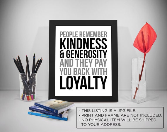 People Remember Kindness And Generosity Loyalty Quote Office Etsy
