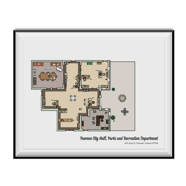 Parks And Recreation Floor Plan Poster Pawnee Rec Offices Tv Show Wall Art Gift Walmart Com Walmart Com