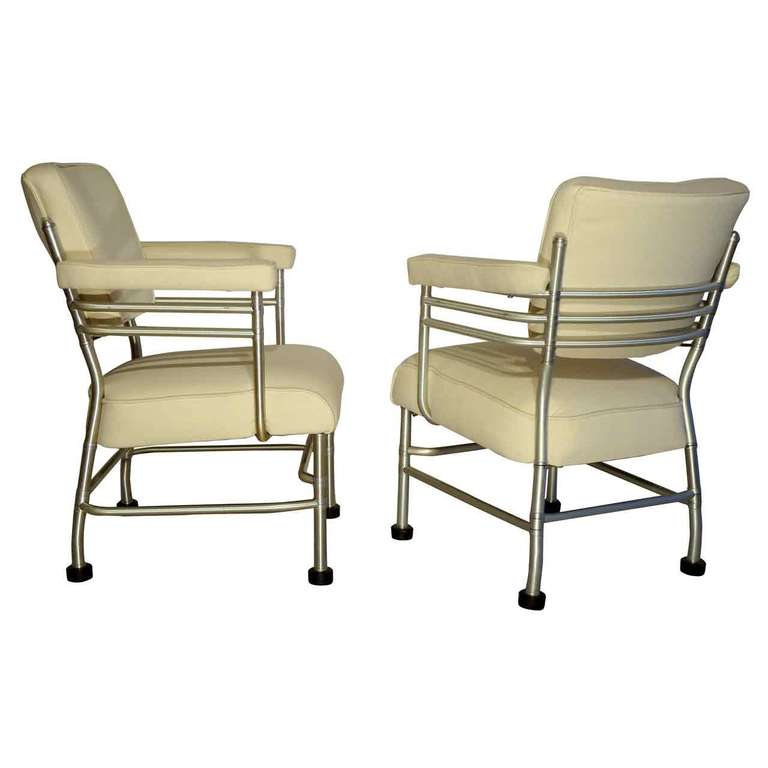 Warren Mcarthur Warren Mcarthur Pair Of Stainless Steel Lounge Chairs And Ottoman Circa 1935
