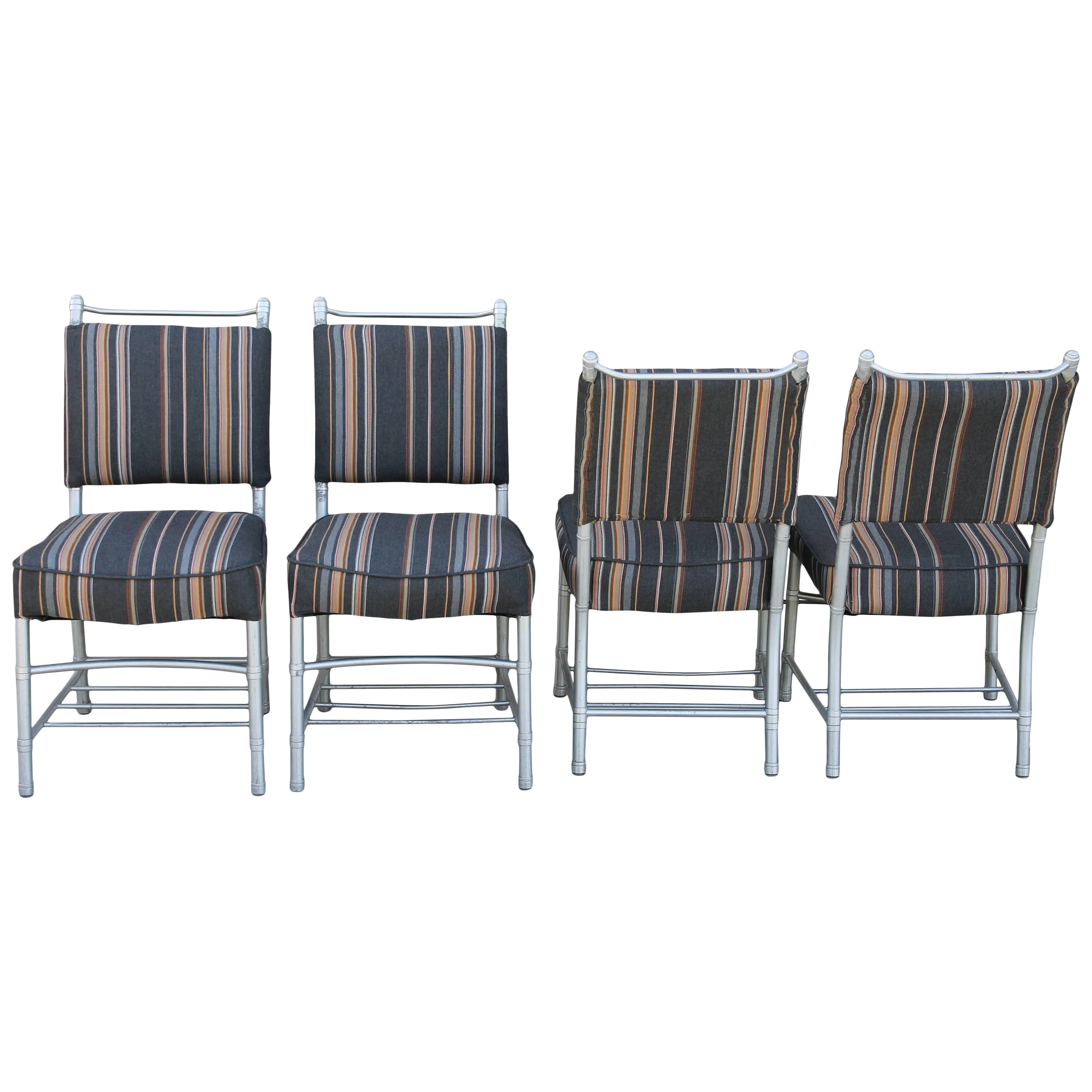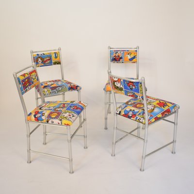 Set Of Four Aluminium Dining Chairs By Warren Mcarthur With Pop Art Fabric Cover Design Addict Chairs Stools