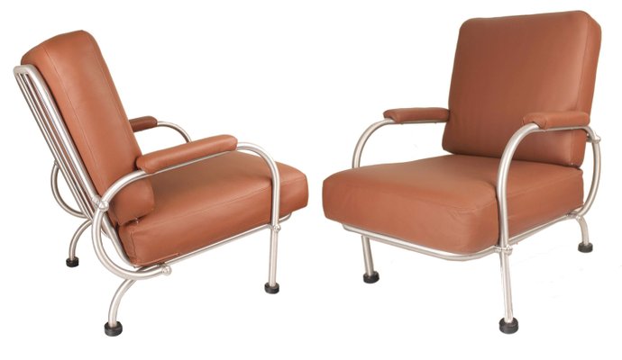 Art Deco Leather Lounge Chairs From Warren Mcarthur 1930s Set Of 2 For Sale At Pamono