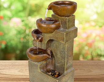 4 Tier Cascading Resin Rock Waterfalls Tabletop Water Fountain Garden Patio Table Decorations Fountains With Zen Elements Overstock 31510664