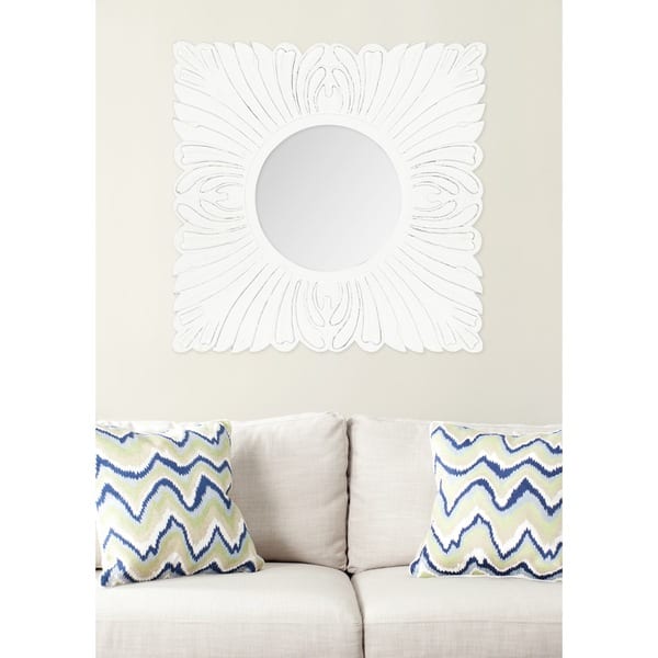 White Wood Decorative Wall Mirror 35x35 In Kirklands