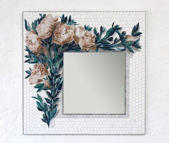 Large Decorative Mirror Teal Gray White Mosaic Green Street Mosaics