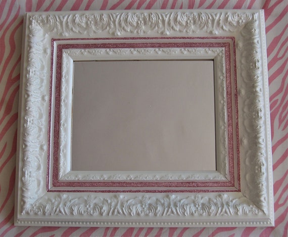 Glossy Off White Decorative Mirror With Pink Glitter Etsy