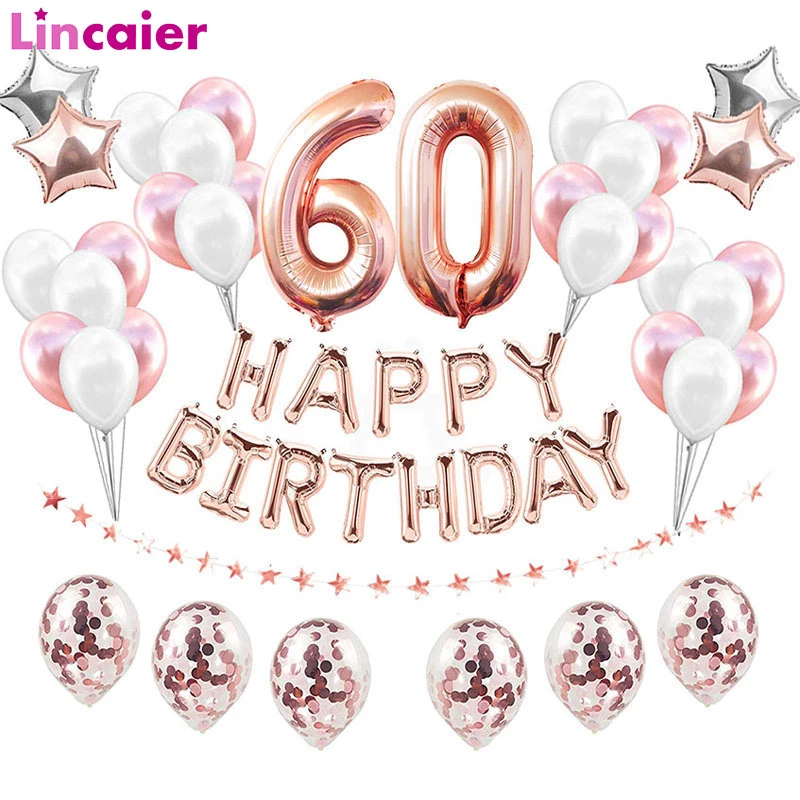 Rose Gold Number 60 Foil Balloons 60th Happy Birthday Party Decorations Adult 60 Years Old Man Woman Supplies Sixty Anniversary Ballons Accessories Aliexpress