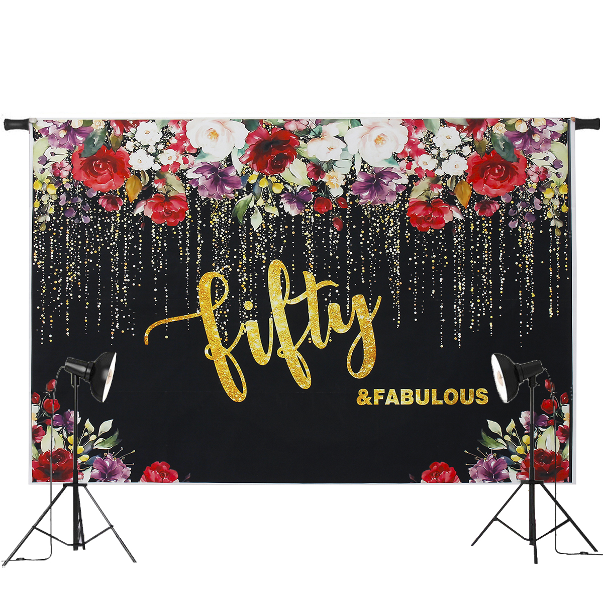 Amazon Com Funnytree 7x5ft Flowers Gold 50th Birthday Party Backdrop Adult Lady Golden Glitter Photography Background Fifty Years Old Age Floral Women Cake Table Decorations Banner Photo Booth Props Camera