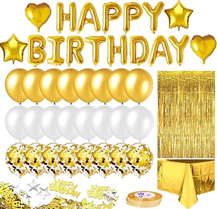 Amazon Com Movinpe Gold Birthday Party Decoration Happy Birthday Banner Golden Fringe Curtain Foil Tablecloth Heart Star Foil Confetti Balloons 10g Table Confetti For Girl Boy Kids Men Women Adults Toys Games