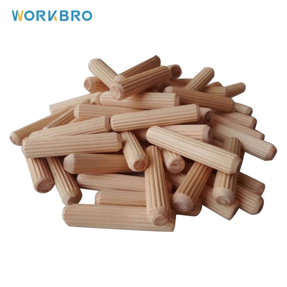 Furniture Fittings Wooden Dowels Fastener Connection On Chipboard Workpieces Close Up Furniture Fittings Wooden Dowels