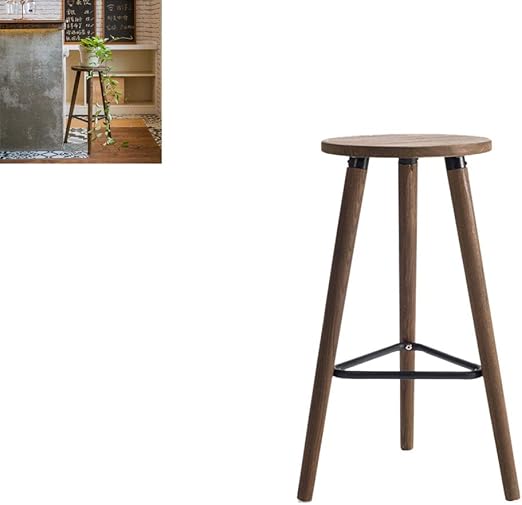 Amazon Com Solid Wood Bar Stool Triangular Metal Connection There Are Silent Non Slip Feet On The Bottom Waterproof Anti Corrosion High Temperature Material Bar Stool Furniture Decor