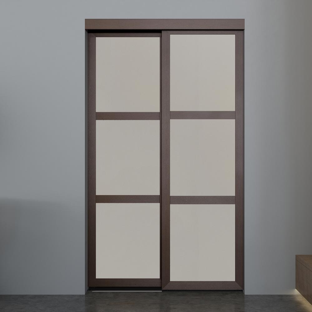Unbranded 60 In X 80 5 In 3 Lite Indoor Studio Mocha Mdf Wood Frame And Frosted Glass Interior Sliding Closet Door Is603litem The Home Depot