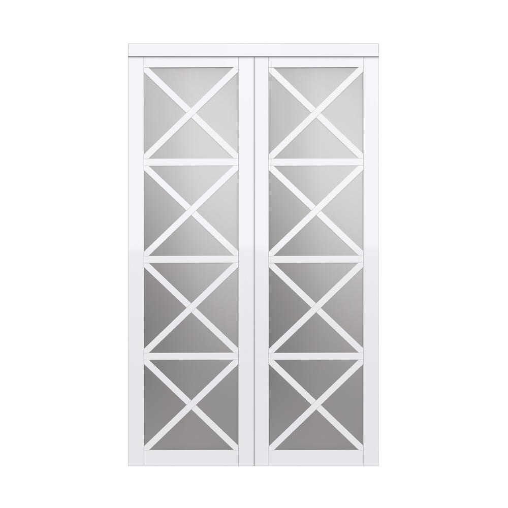 Truporte 72 In X 80 In Harmony White Mirror Mdf Bypass Sliding Closet Door Eu3210pwcle072080 The Home Depot