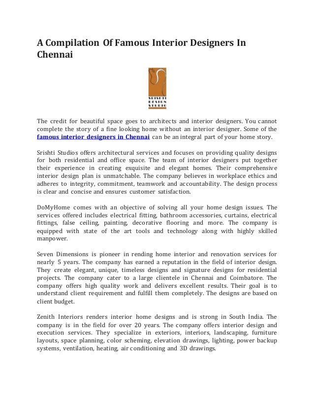 Famous Interior Designers In Chennai A Compilation By Srishtistudio Issuu